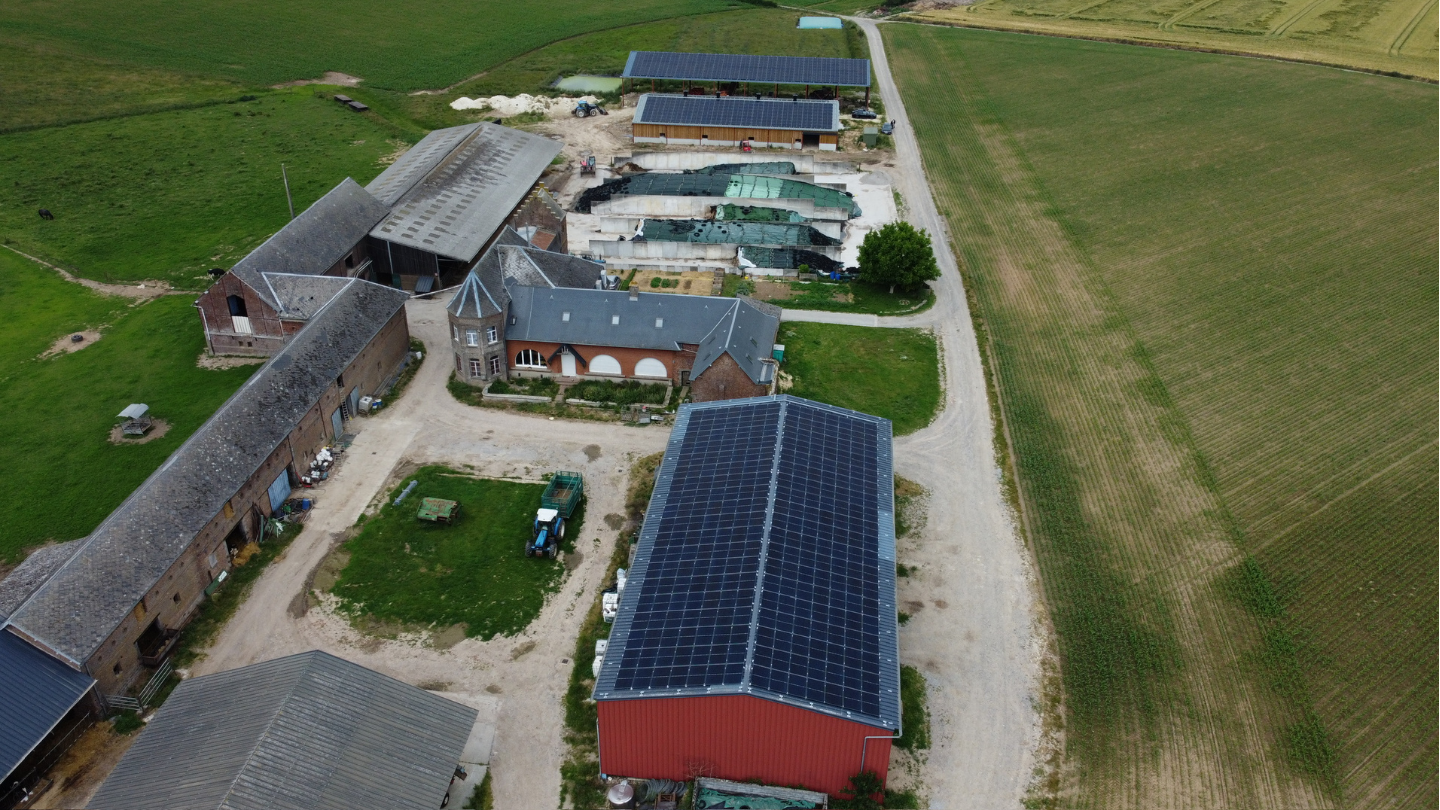 Installation d’une centrale photovoltaïque en toiture agricole – puissance installée : 287 kWc.