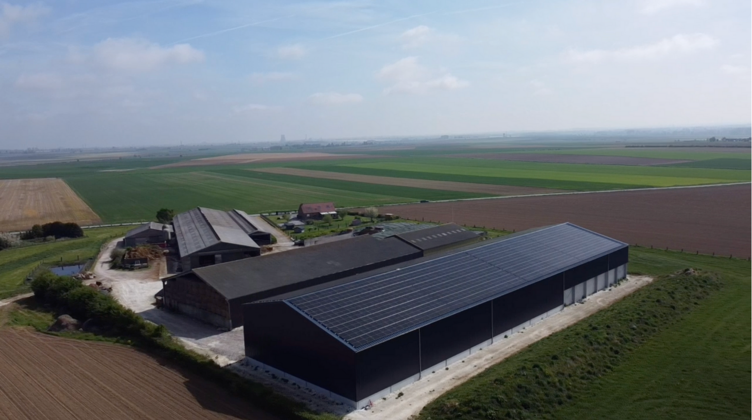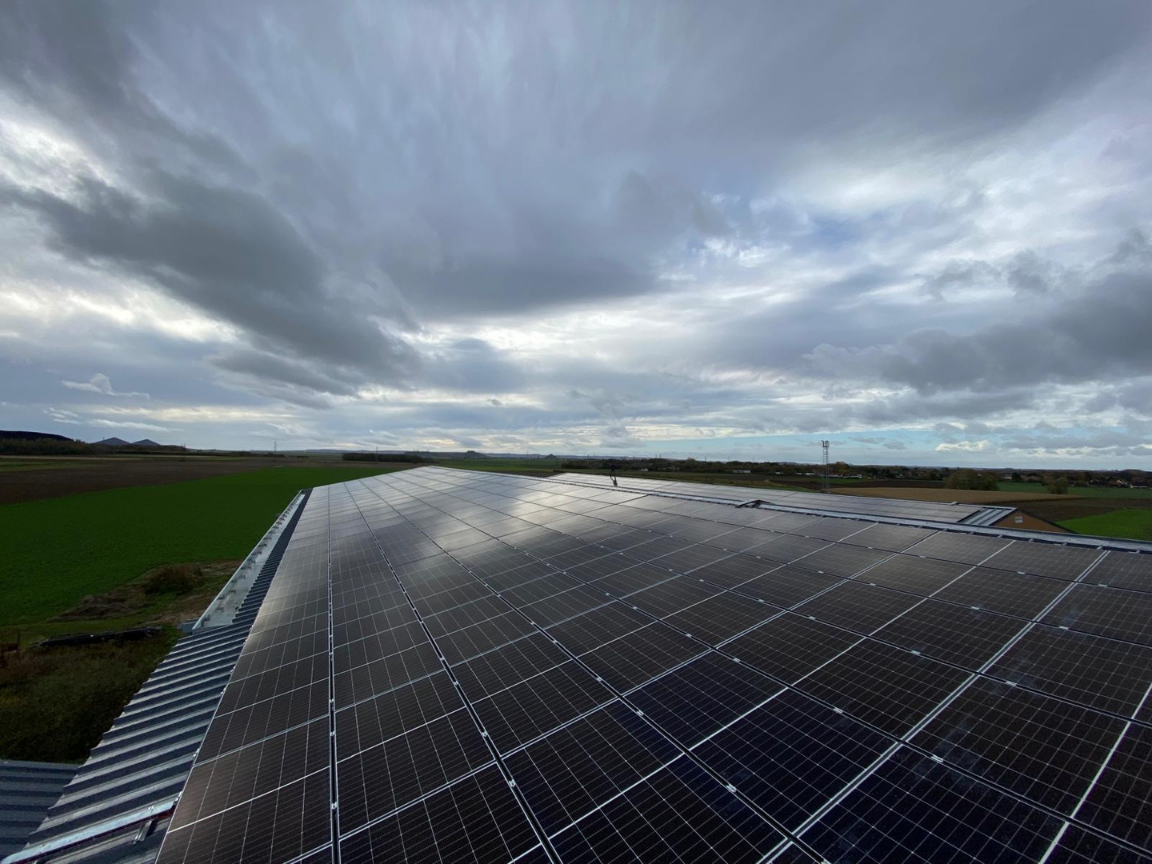 Installation d’une centrale photovoltaïque en toiture agricole – puissance installée : 168 kWc.